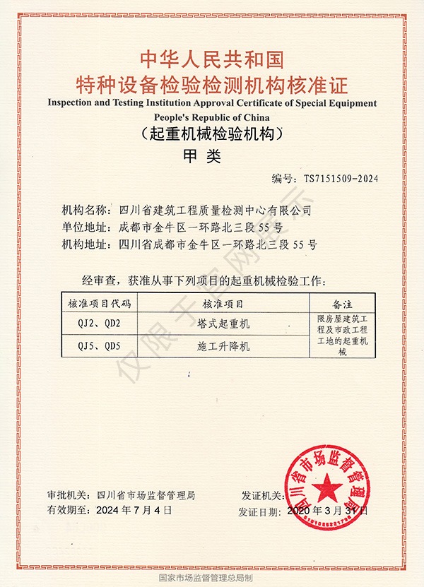 特種設備檢驗檢測機構核準證